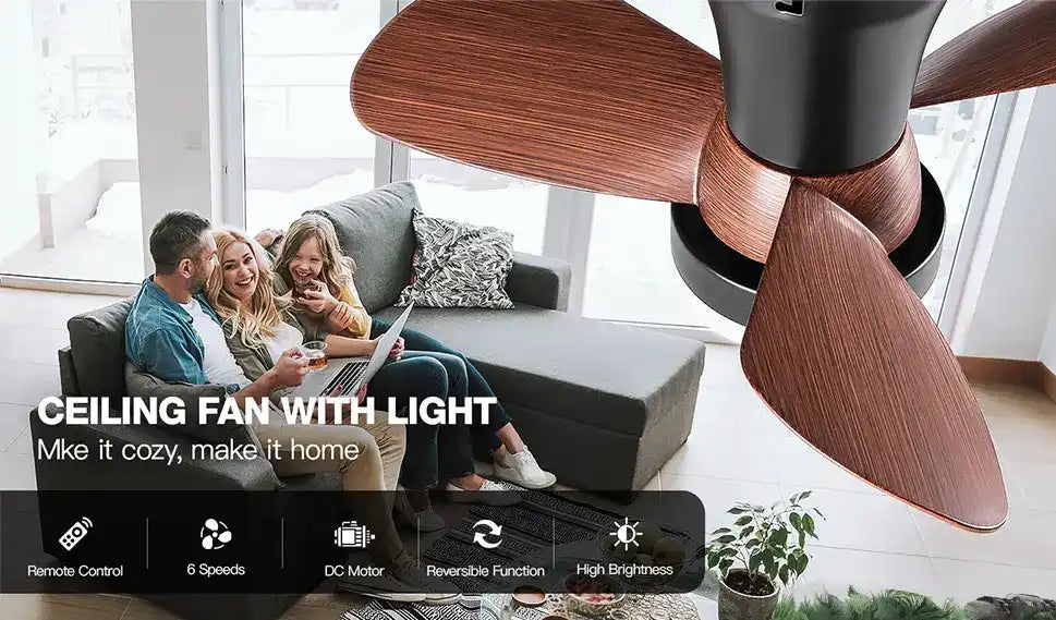Quiet power, refined style — this low-profile ceiling fan brings effortless airflow and ambient light into compact spaces. With whisper-quiet performance and intuitive remote control, comfort is no longer a compromise — it’s a breeze.