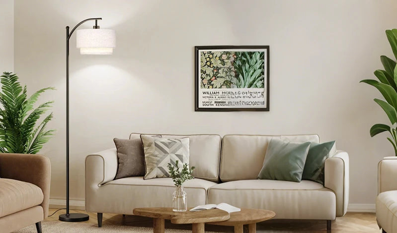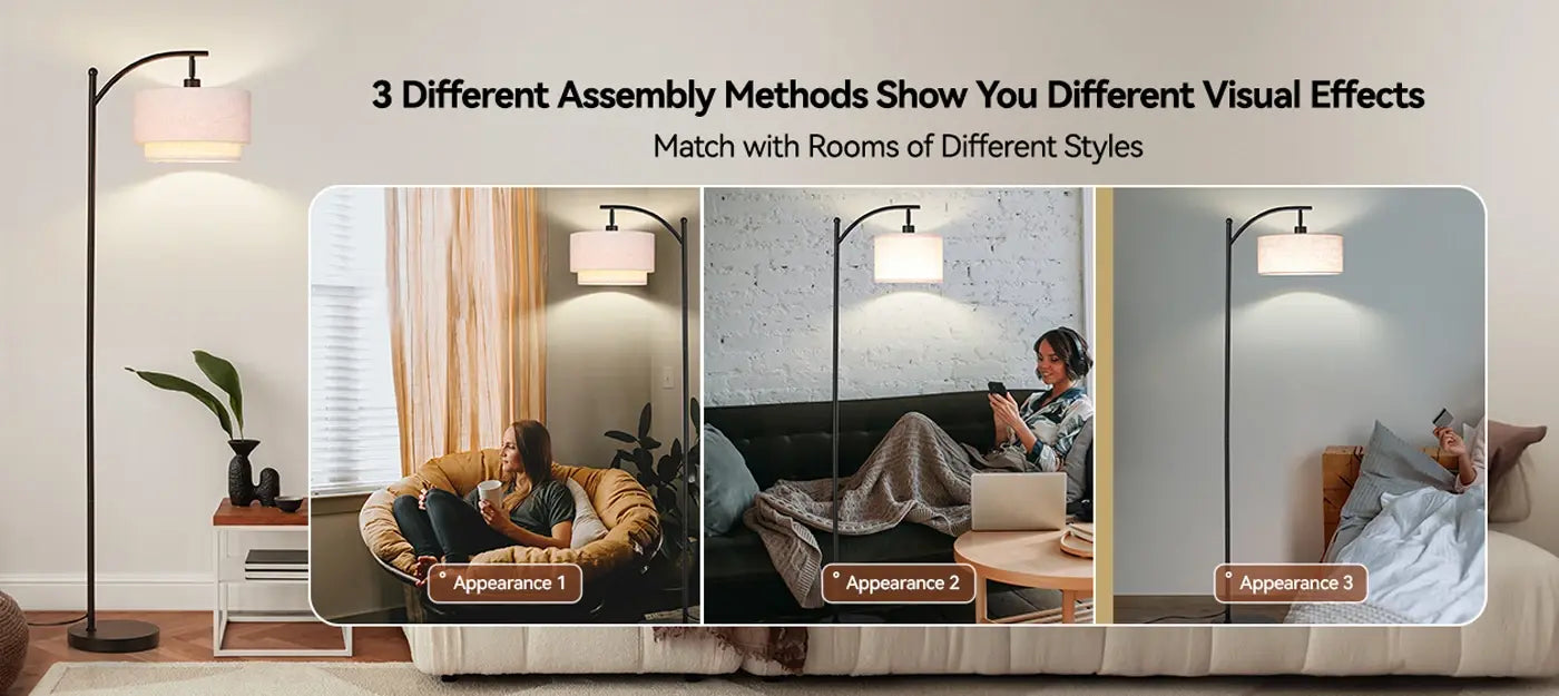 SUNMORY Arc Floor Lamp includes an energy-efficient 12W LED bulb. With adjustable color temperatures, simply tap the foot switch to cycle through lighting modes hands-free.