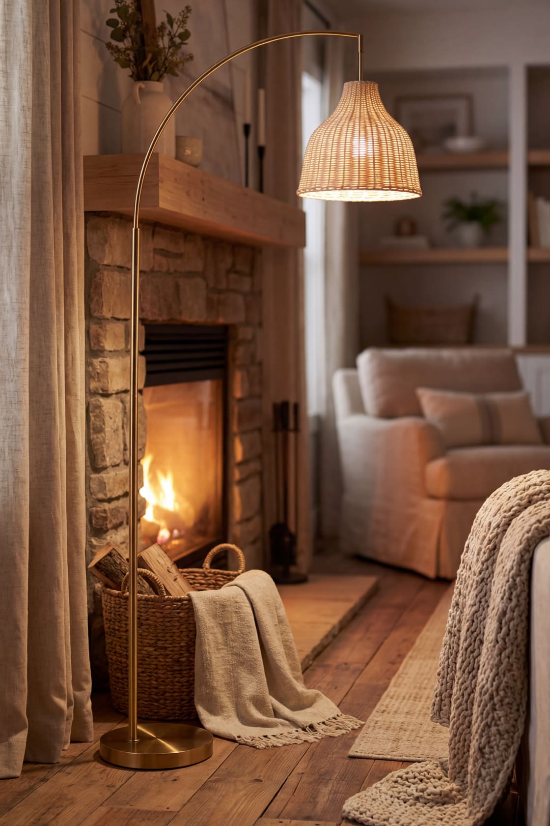 Features a heavy, cast iron base that prevents tipping. The reinforced rattan shade stays sturdy and safe, even with kids and pets around.
