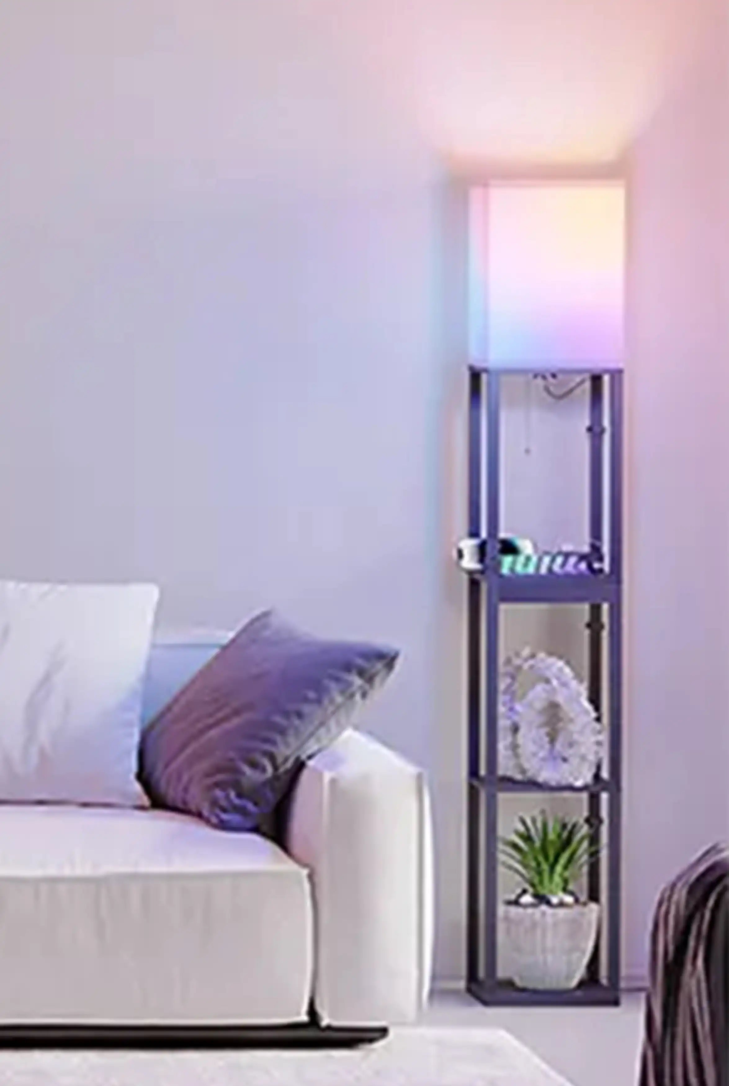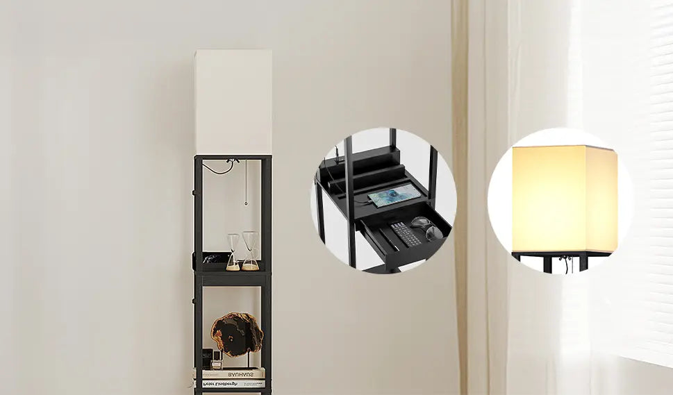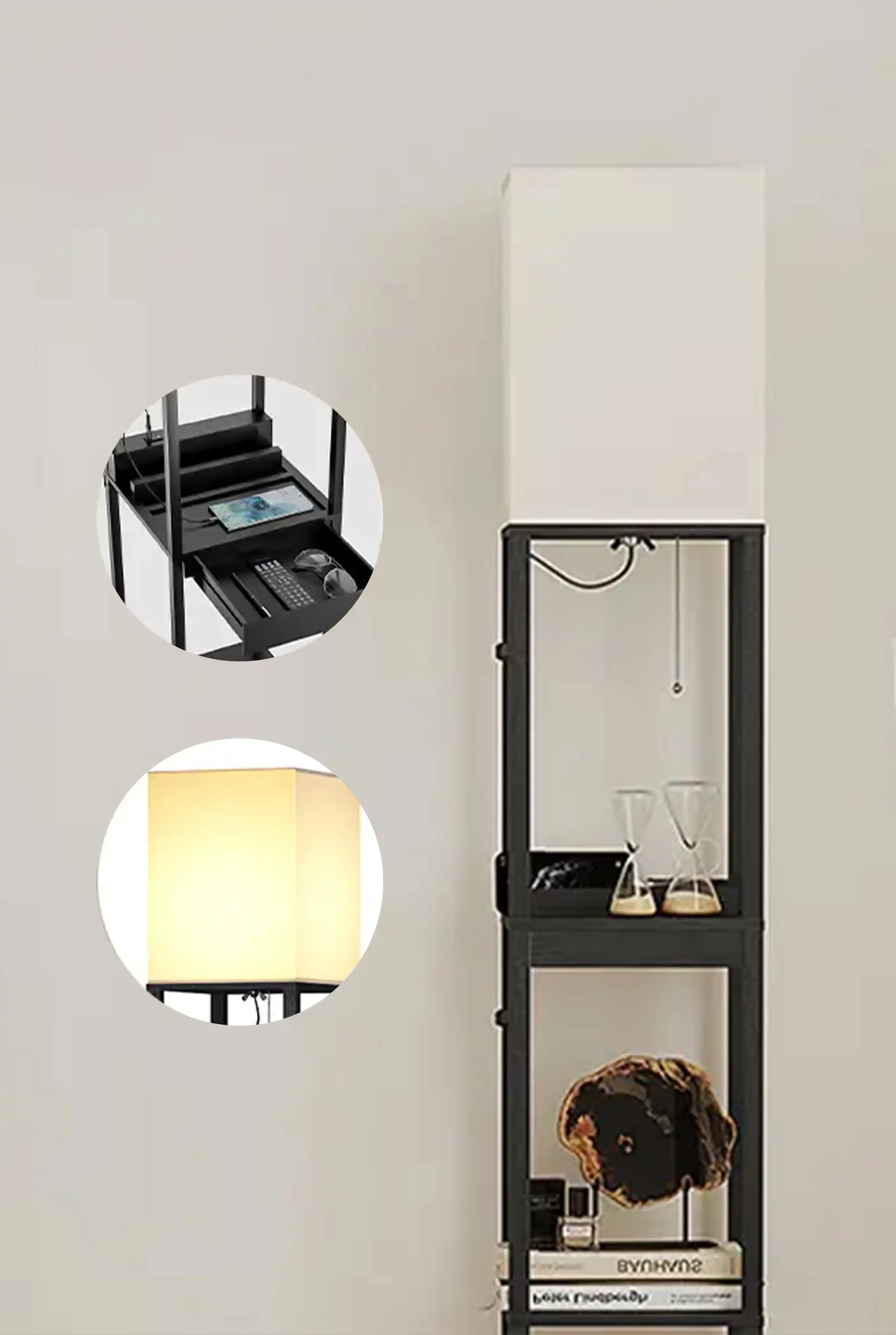 Dimmable shelf floor lamp with 1 Drawer and 2 USB Ports