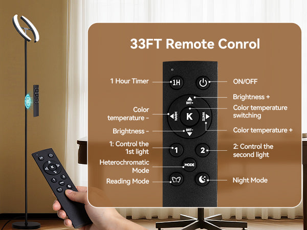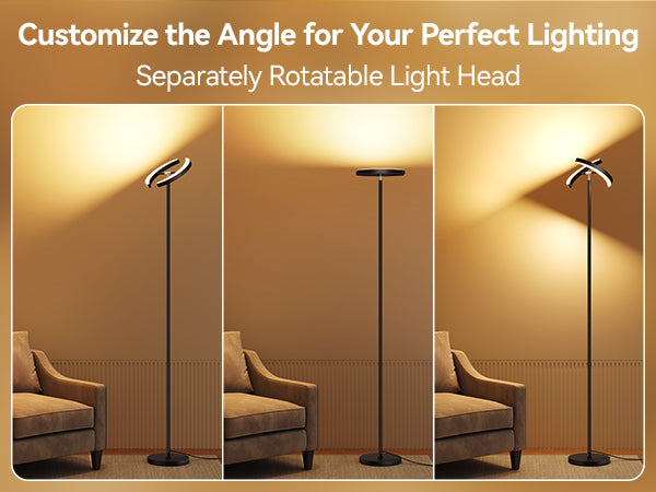 Elevate your home with the Sunmory Dual-Moon LED Floor Lamp. This modern standing lamp features two independently rotatable lights, offering customizable, layered lighting for any space. Easily adjust brightness and color with the included remote. Its sleek, space-saving design and sturdy anti-tip base provide a safe and stylish solution for your living room or office.