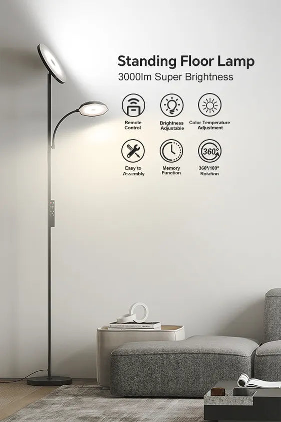 Let your space shine exactly the way you want — from a soft evening glow to a brilliant burst of clarity. This floor lamp lights up your life with ease and elegance — whether you're reading late, relaxing softly, or working bright. All the light you need, without the extra energy.