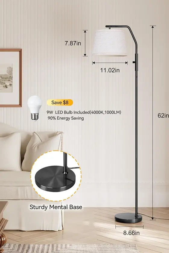 Create the perfect atmosphere for reading, relaxing, or working with this seamless 0–100% dimmable LED floor lamp. The 270° adjustable head directs light exactly where you need it—no glare, no shadows. A natural white 4000K bulb delivers warm clarity while saving energy, and base keeps things stable around kids and pets. Tool-free 5-minute assembly makes setup effortless. Mood lighting, made simple.