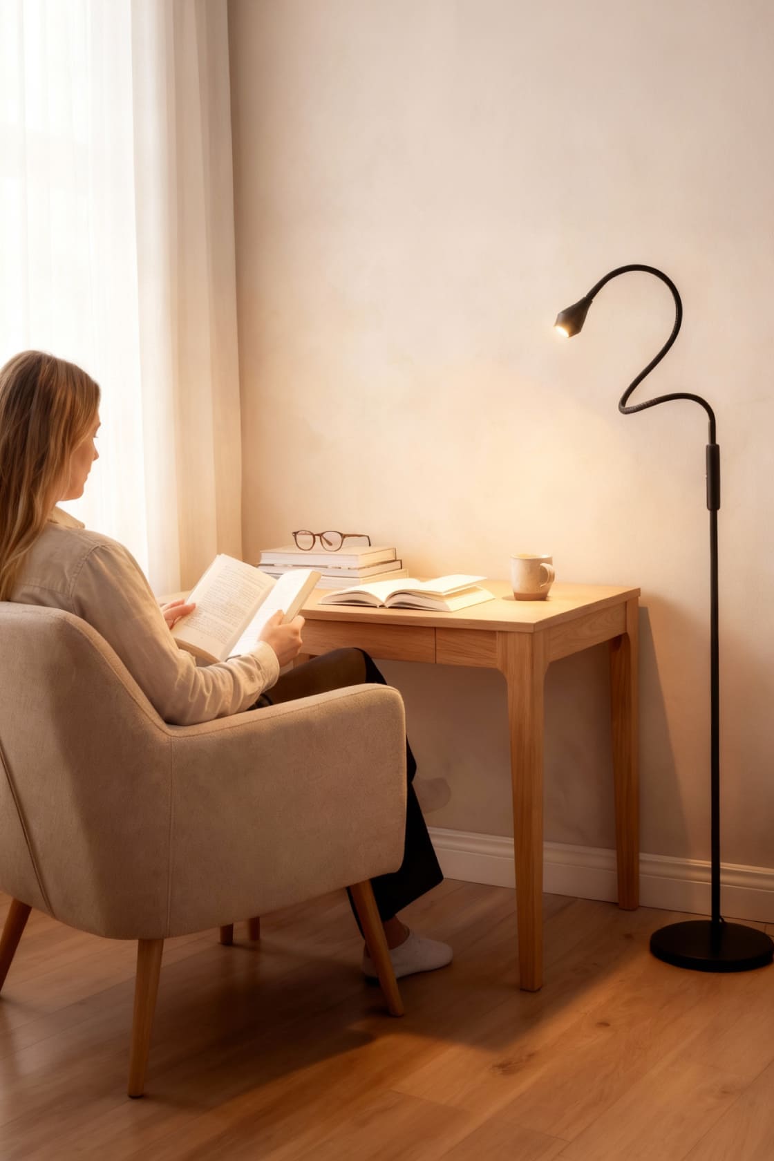 Adjust the light head to switch between focused beam (ideal for crafts, writing, or tasks) and wide, softer beam (perfect for relaxing, reading, or ambient light)