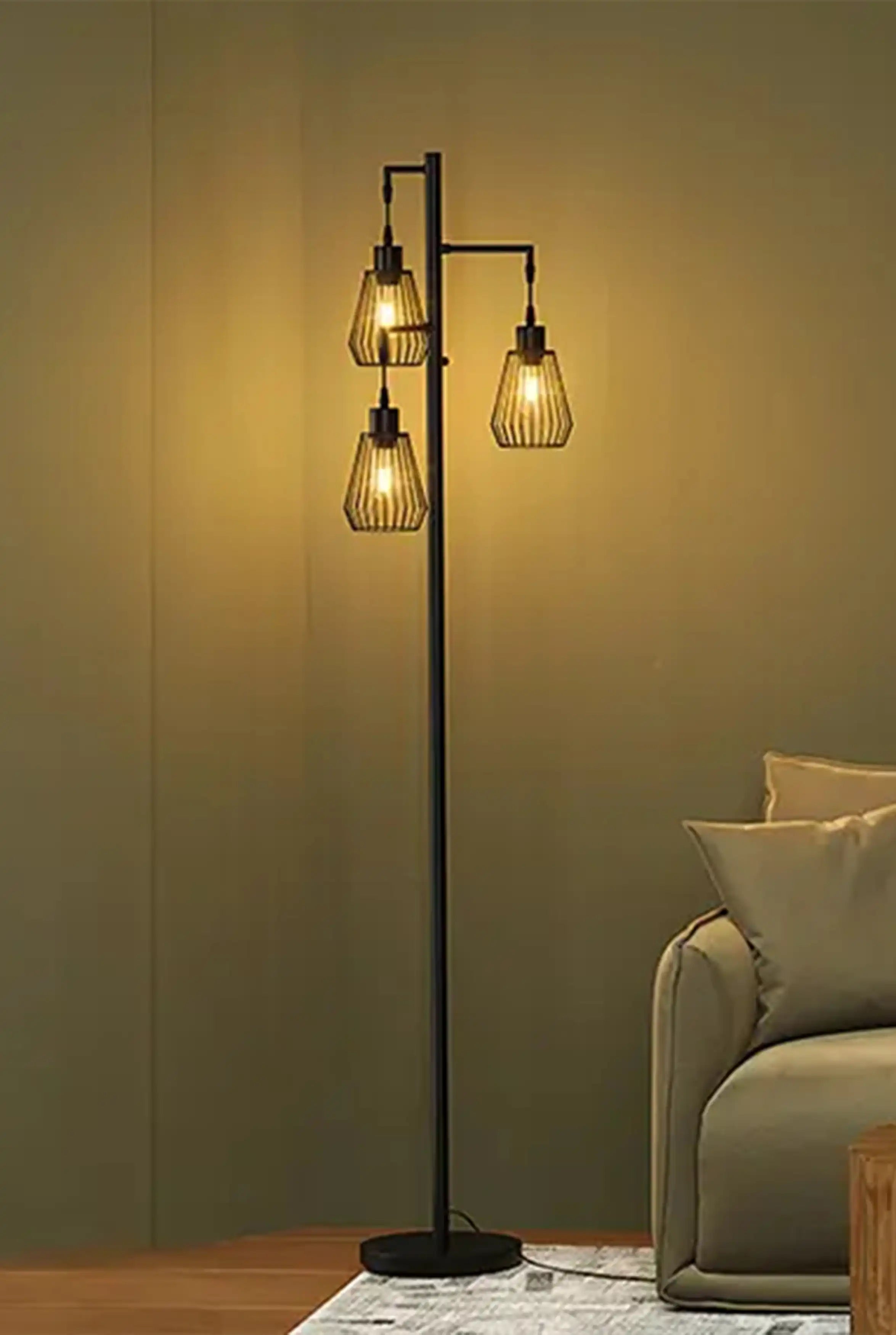 The black metal tree Floor Lamp complements industrial, vintage, and farmhouse decor, enhancing any space with its minimalist elegance.