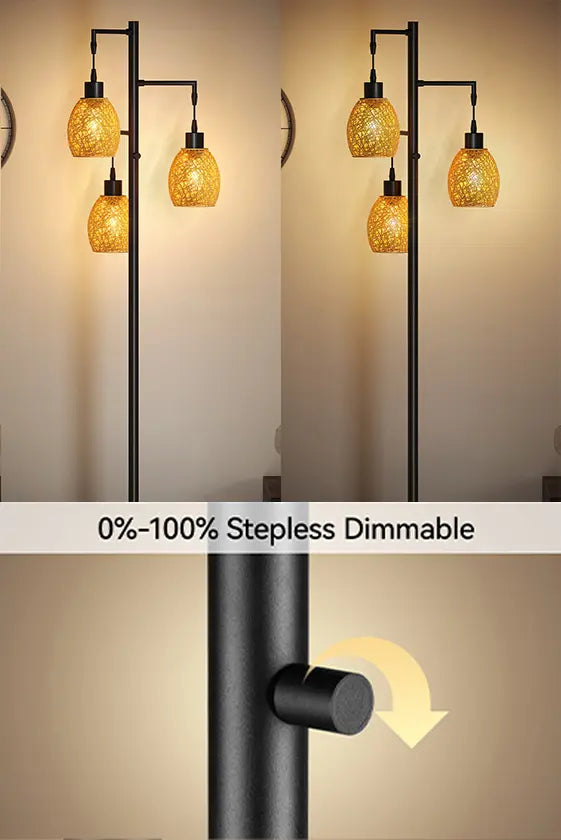 Let your space breathe with organic warmth—this triple rattan floor lamp blends stepless 0-100% dimming, a child-safe weighted base, and instant bulb-included glow. Whether reading in bed, hosting gatherings, or crafting midnight inspiration, its natural texture, seamless ambiance control, and steadfast stability weave serenity into every moment.