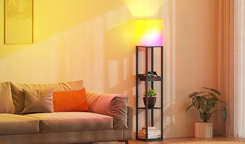 SUNMORY Wood Shelf Floor Lamp with APP Control & RGB Bulb